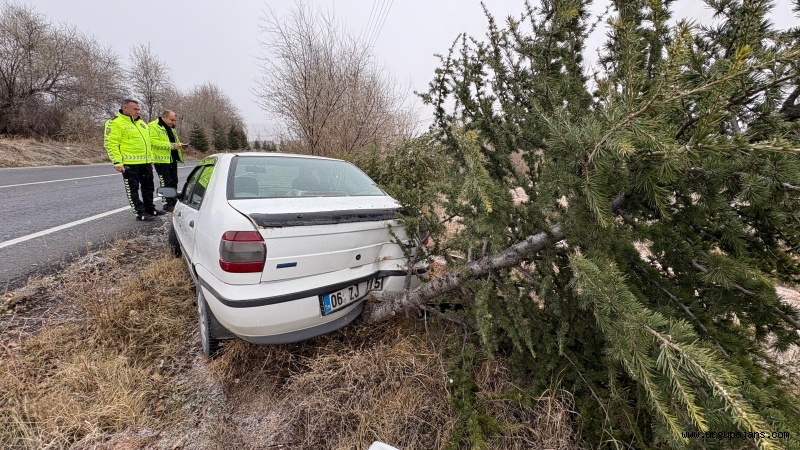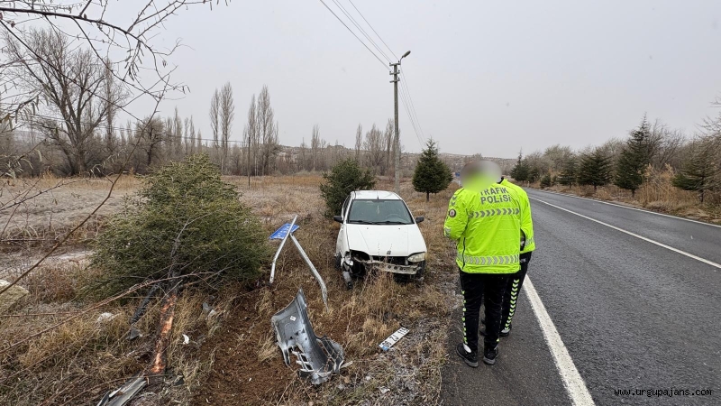 Mustafapaşa’dan Ürgüp istikametine seyir halinde olan 06 ZJ 155 plakalı otomobil, sürücüsünün direksiyon hâkimiyetini kaybetmesi sonucu kontrolden çıktı. Savrulan araç, yol kenarında bulunan ağaçlara ve trafik levhasına çarparak durabildi.