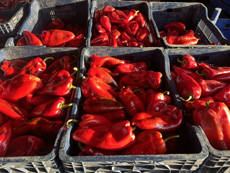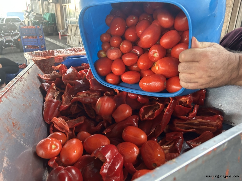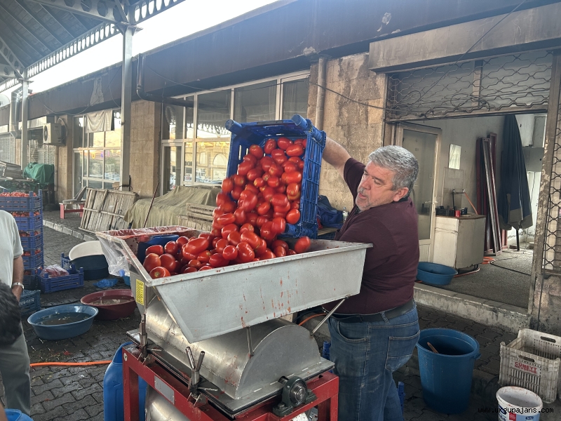 Ürgüp kapalı pazar yerinde salçalık domates, kapya biber satış ve çekim işlemi itinayla yapılıyor.