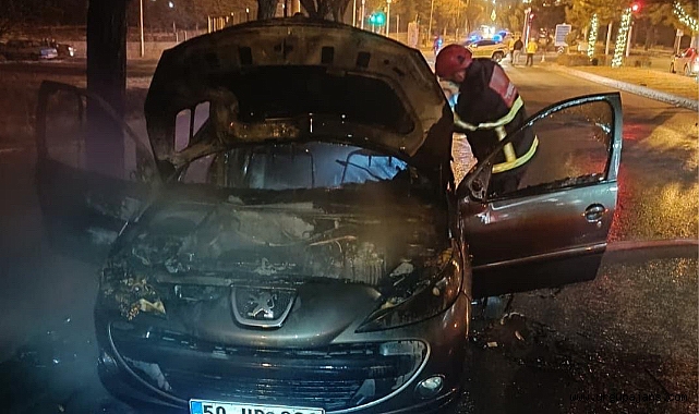 Edinilen bilgilere göre, 50 UR 861 plakalı araç, seyir halindeyken henüz belirlenemeyen bir nedenle alev aldı. Durumu fark eden sürücü, aracı yol kenarına çekerek hızla dışarı çıktı ve olaydan yara almadan kurtuldu.
